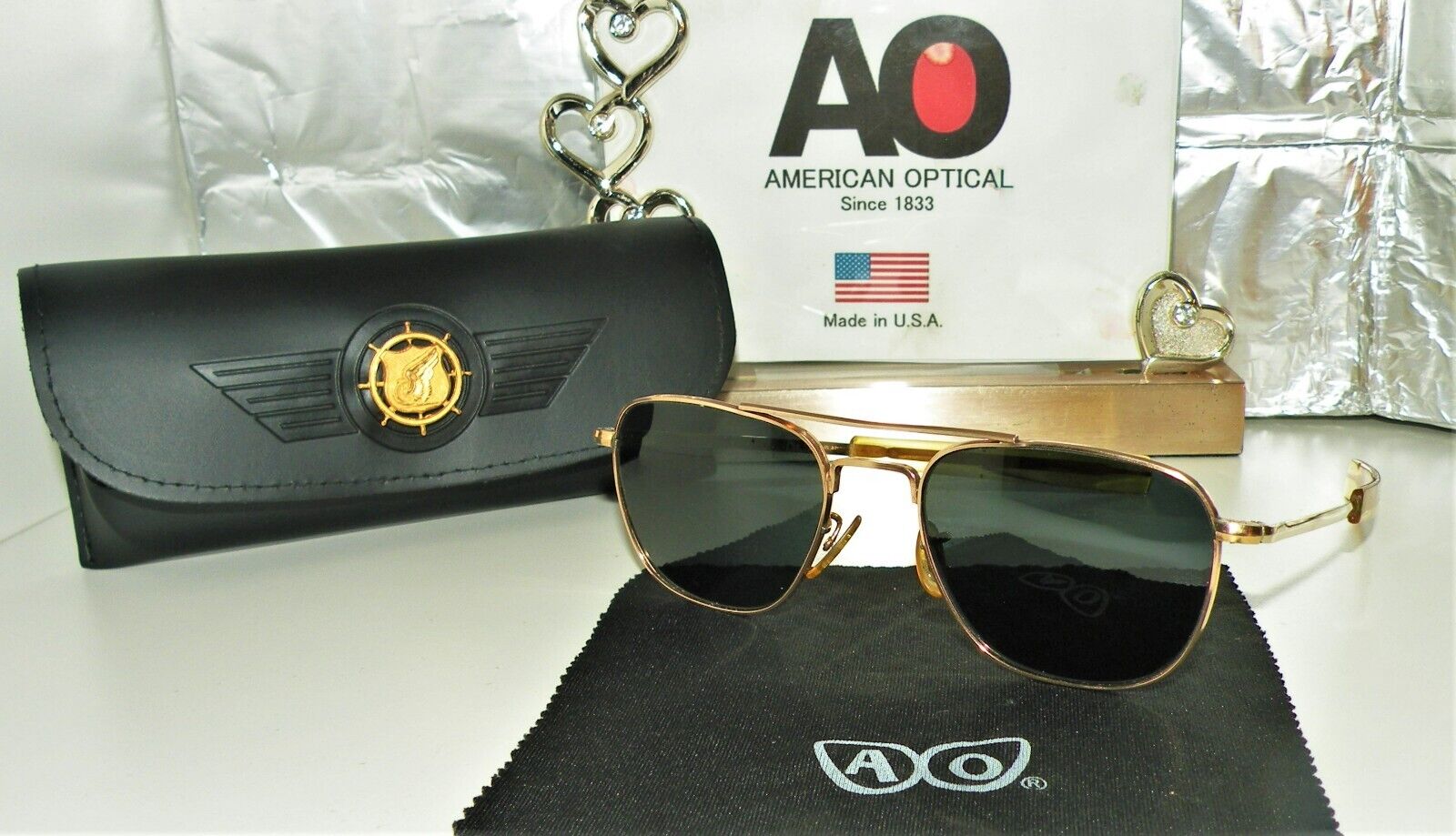 Title (ebay affiliate link): US ARMY CN 91T AMERICAN OPTICAL 1/10 12K GF HGU4/P AVIATOR SUNGLASSES BOX 6 AO