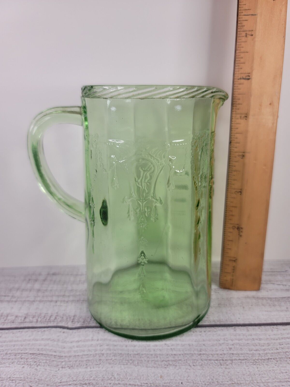 Green Depression Glass Cameo/Dancing Girl Ballerina Hocking Milk Pitcher