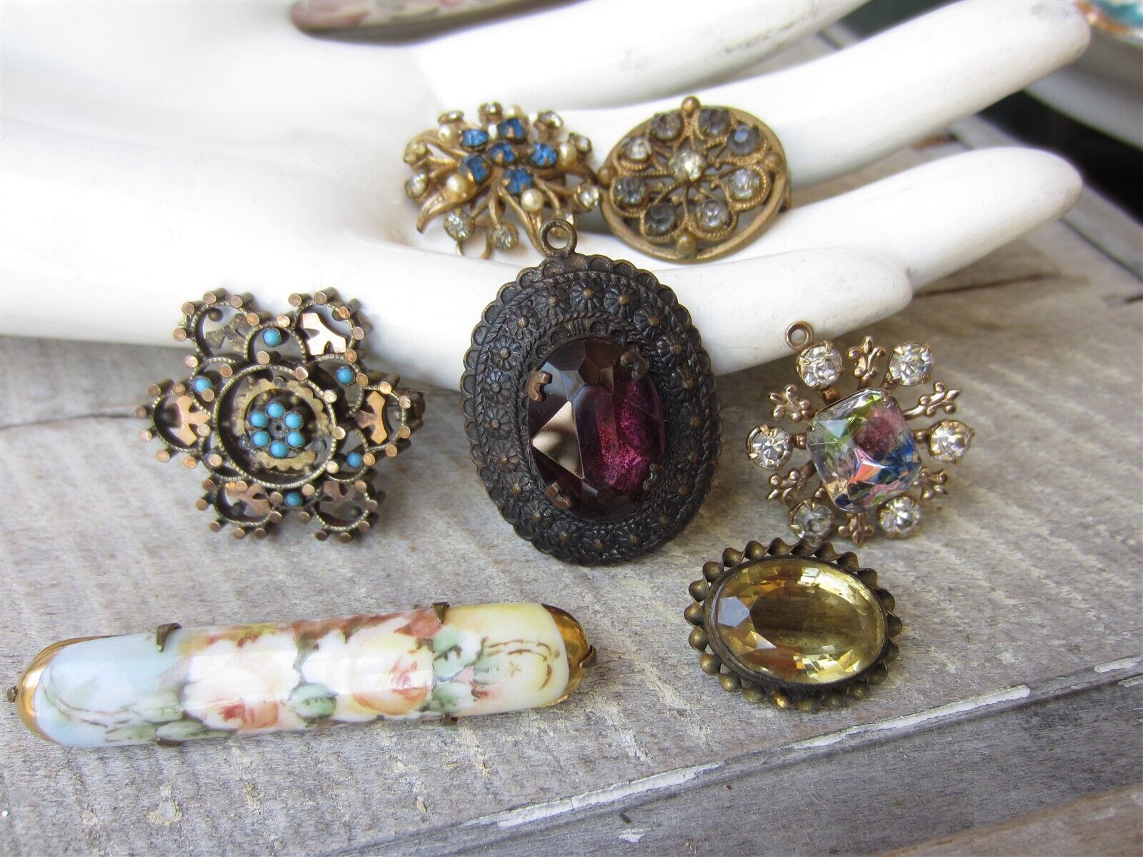 Title (ebay affiliate link): Antique Vintage ESTATE Jewelry Glass Rhinestone Pin Brooch Pendant Mixed LOT