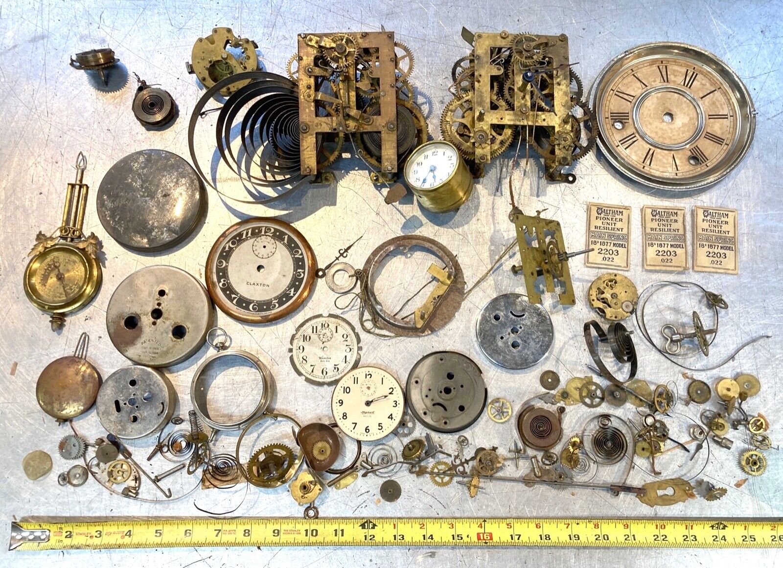 antique LOT clock parts WALTHAM MAIN SPRING W.L. Gilbert movement F. KROEBER
