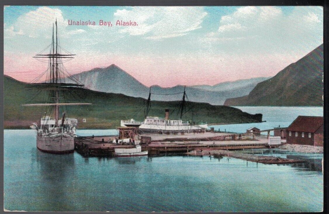 ANTIQUE 19071910 SHIPS AT PIER UNALASKA ALASKA POSTCARD