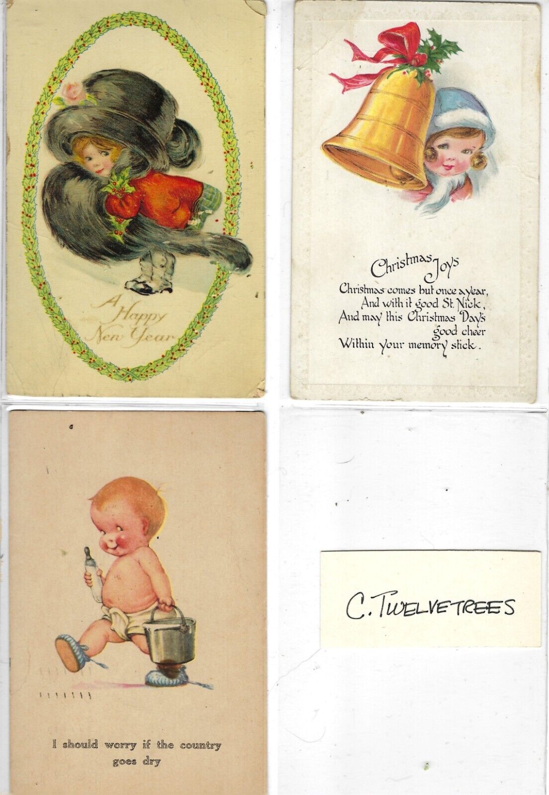 3 Antique Charlie Twelvetrees Signed Postcard Christmas New Years Others
