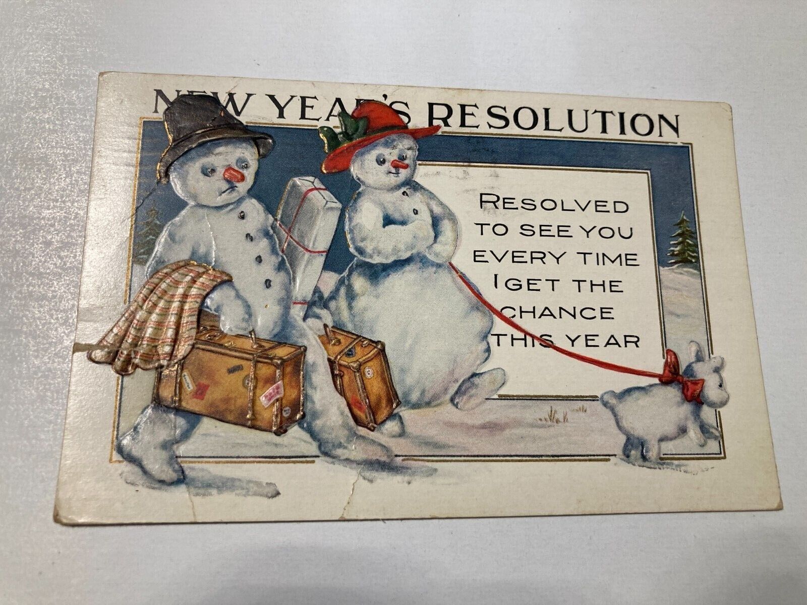 ANTIQUE POSTCARD ATA BUCK NEW YEARS RESOLUTION SNOW COUPLE