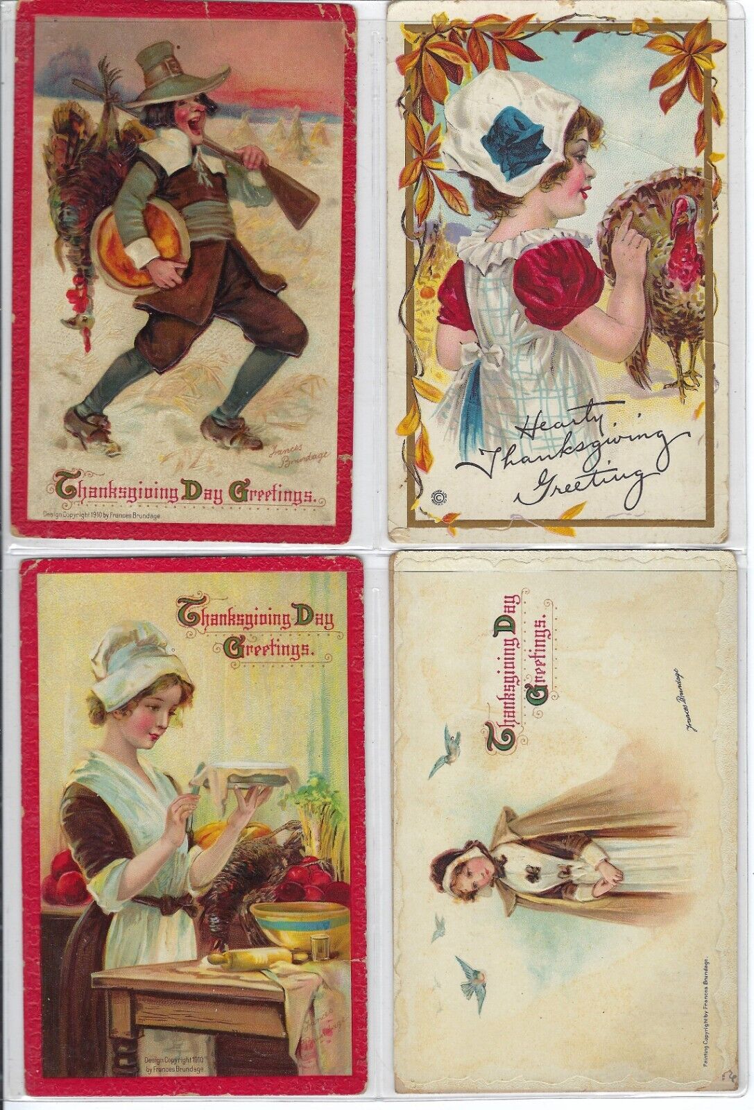 5 Antique THANKSGIVING Signed by Artist Frances Brundage Postcard