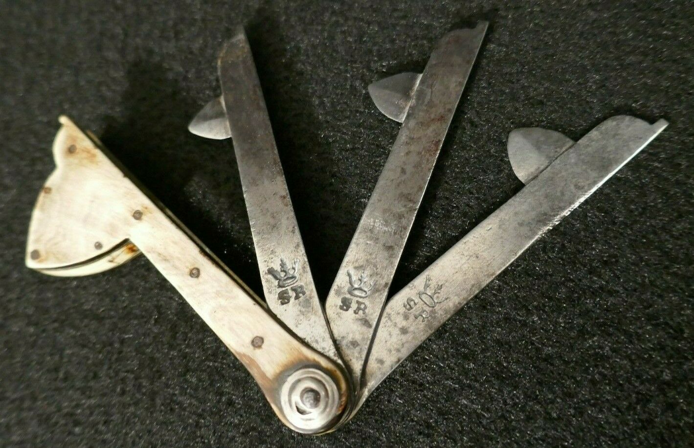 Title (ebay affiliate link): Civil War Era Large Stag Three Fleam Lancet Blood Letting Device Original Early