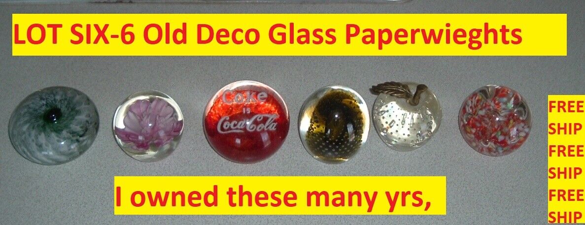 LOT 6 Deco Glass OLD Paperweights Coca Cola Coke Soda Pop LOT SIX paperweights