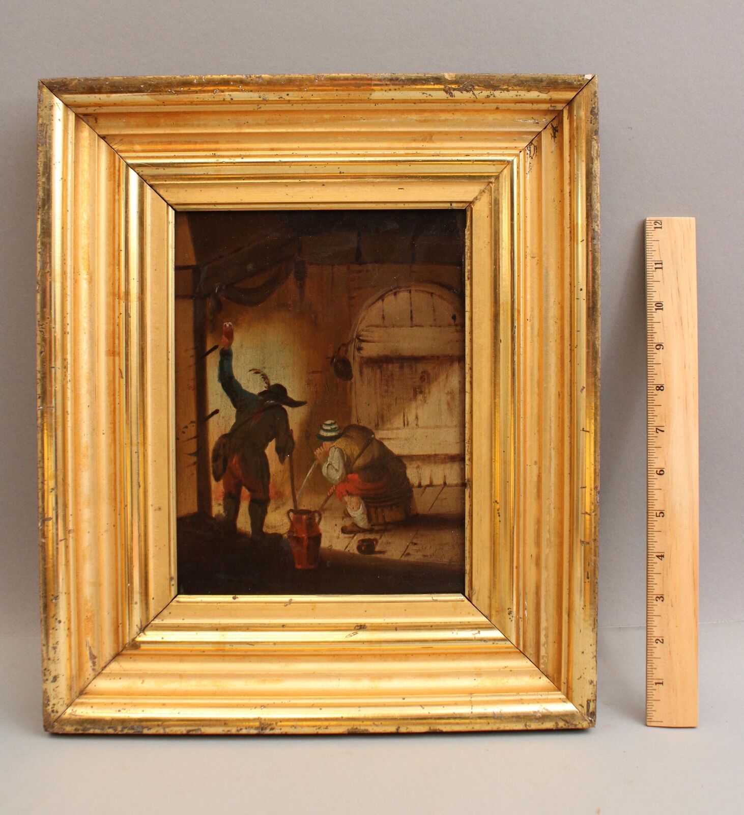 Title (ebay affiliate link): Antique 17/18thC European Genre Oil Painting of ??? Original Gold Gilt Frame