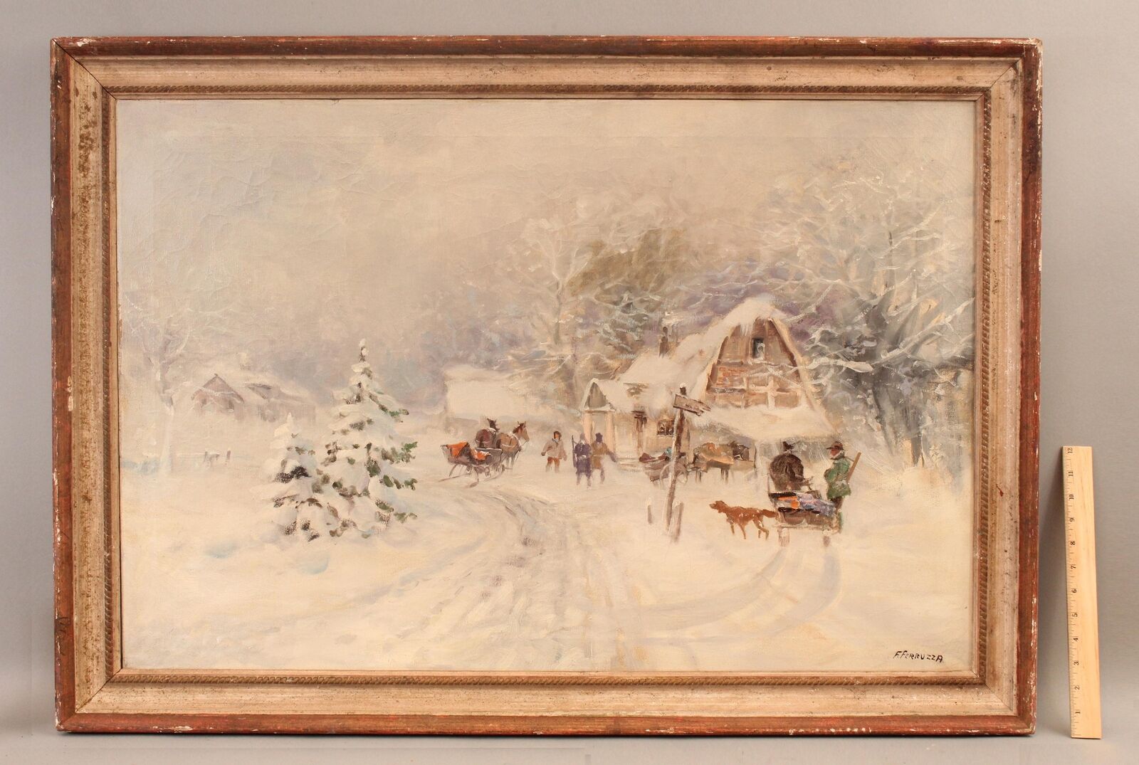 Title (ebay affiliate link): Antique FRANK FERRUZZA American Impressionist Winter Snow Landscape Painting NR