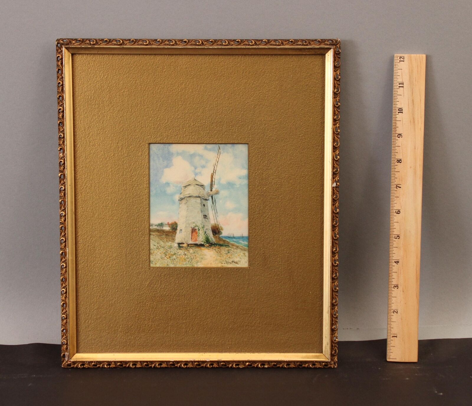 Small Antique LOUIS D NORTON Windmill Watercolor Painting Maine Artist NR
