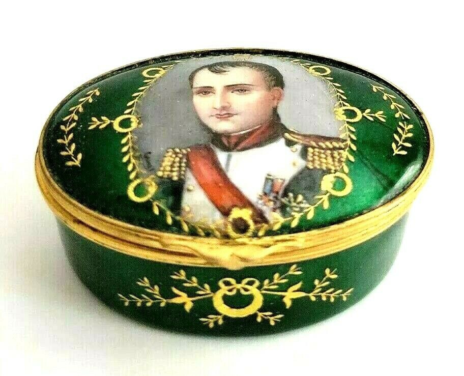 Title (ebay affiliate link): Antique French Enamel Trinket Box with Signed Hand Painted Portrait of Napoleon