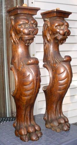 Title (ebay affiliate link): PAIR ANTIQUE 19thC CARVED OAK GOTHIC LIONS ARCHITECTURAL FRAGMENTS HORNER? N/R