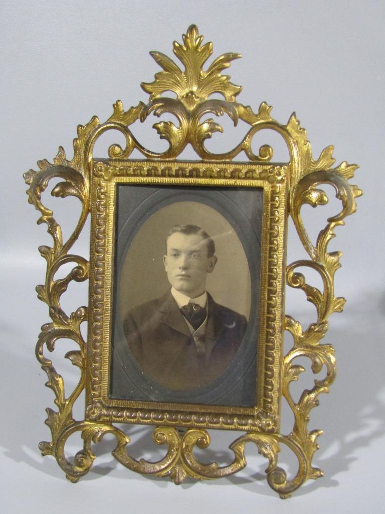 ANTIQUE GILT IRON ROCOCO PICTURE FRAME WITH EASEL DESK OR TABLE