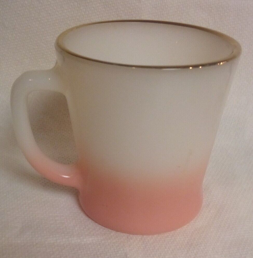 Vintage Anchor Hocking Fire King Milk Glass Coffee Mug Yellow Gold Rim