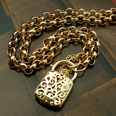 Title (ebay affiliate link): 9ct Yellow Gold GF Solid Necklace & PadLock Stamped 9K