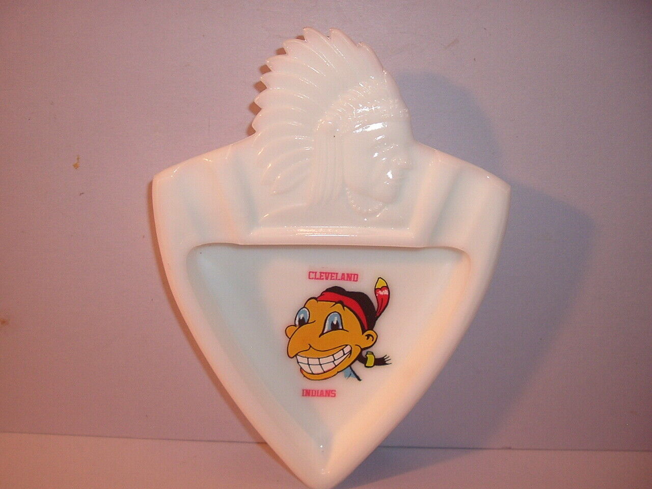 Title (ebay affiliate link): Vintage Cleveland Indians Mascot Milk Glass Arrowhead Ashtray Chief Headdress