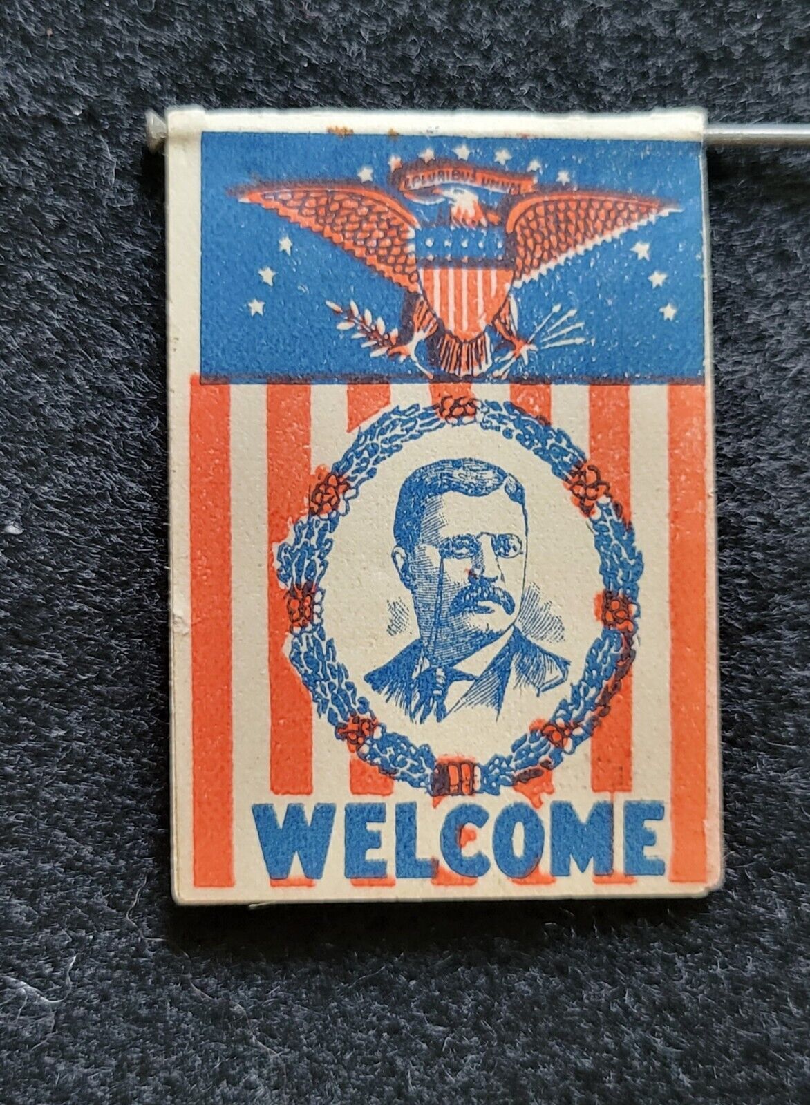 TEDDY ROOSEVELT FLAG PIN ORIGINAL ANTIQUE 1901 1909 PRESIDENTIAL FLAG