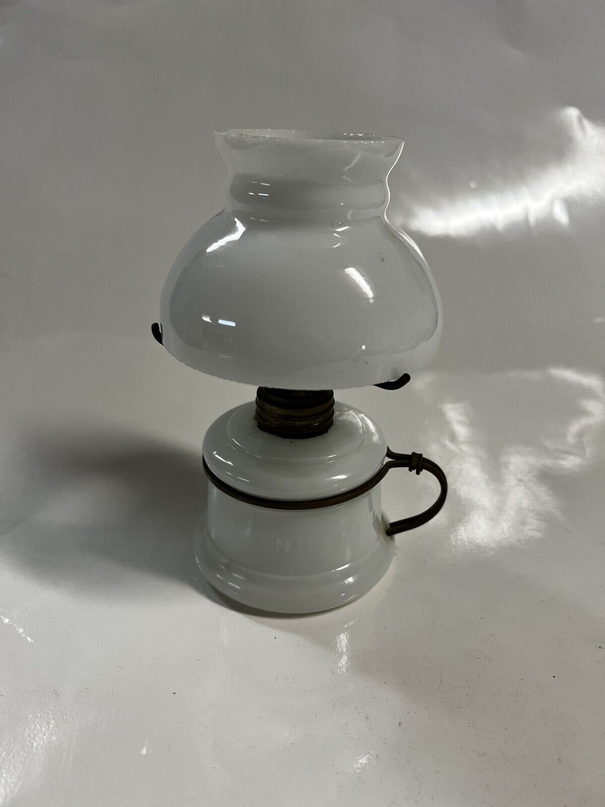 Vintage Milk Glass Nutmeg Miniature Oil Lamp C3