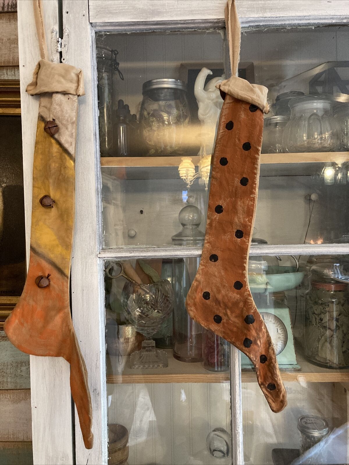 Title (ebay affiliate link): Primitive pair of Fall Autumn Halloween painted cotton stockings.. Hand made