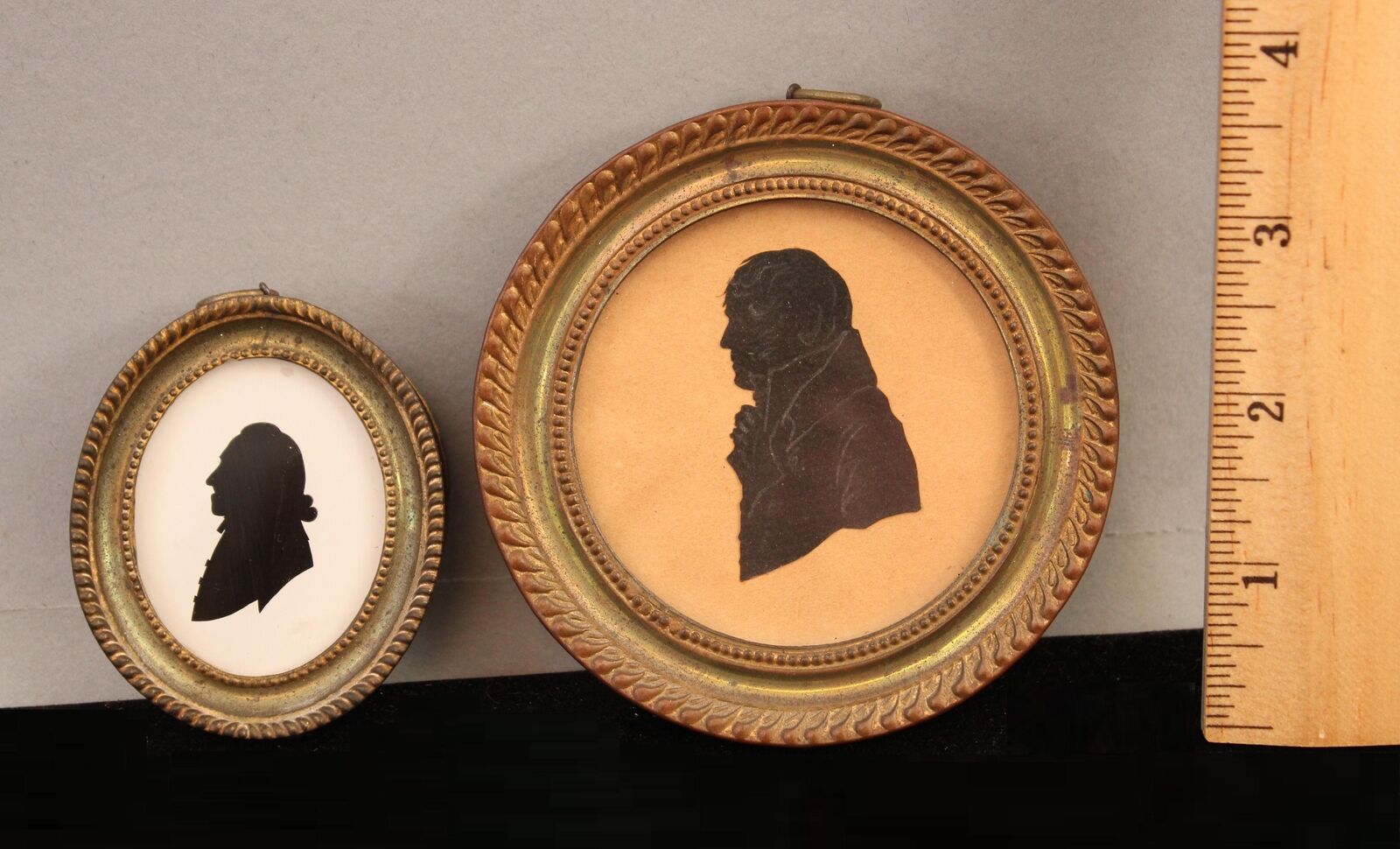 Title (ebay affiliate link): Antique Early Primitive Folk Art Silhouette Portraits 1792 PaperCut Painted