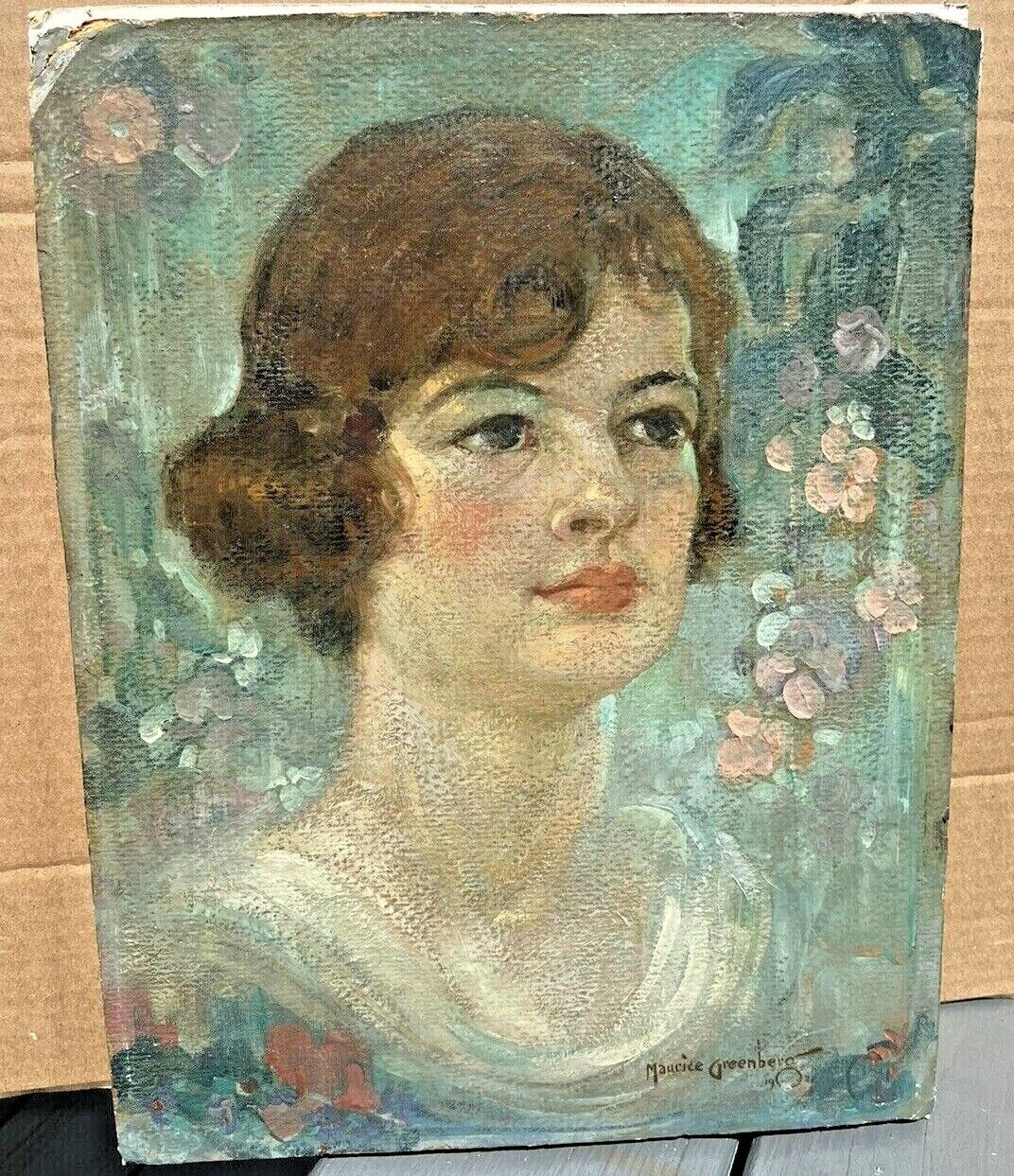 Signed Antique American Art Deco Original Impressionist Oil Painting Portrait