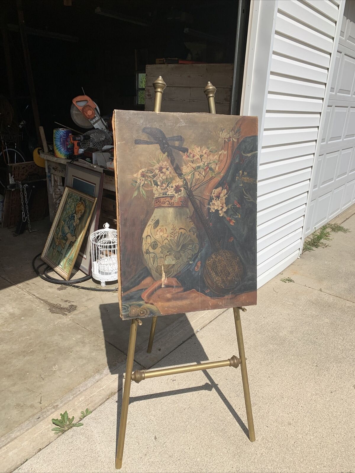 Title (ebay affiliate link): Antique Still Life Oil Painting Canvas 1918 Signed Laura Dummett 30x22” As Is