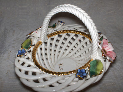 Title (ebay affiliate link): Open weave signed ceramic dish capodimonte type flowers