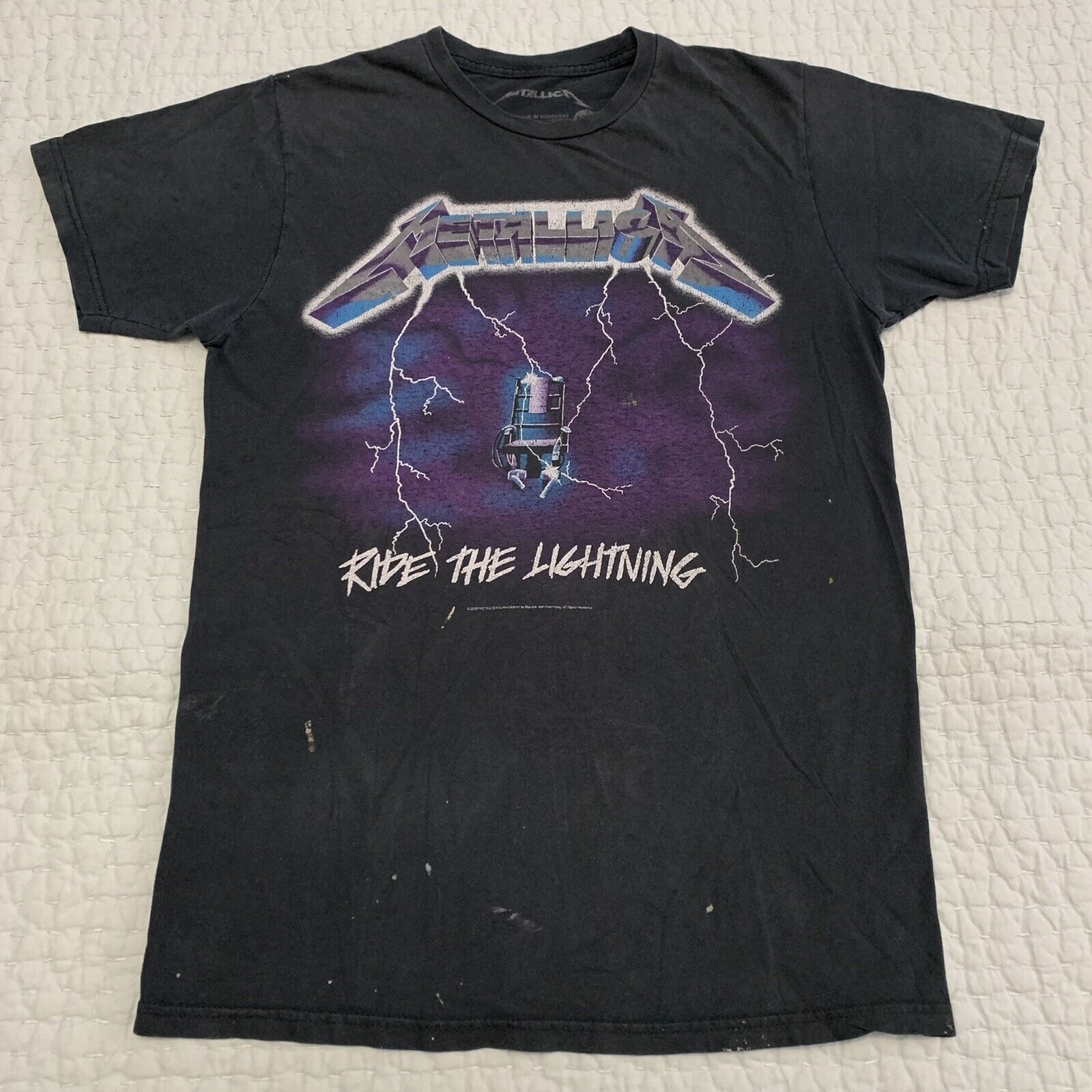 Title (ebay affiliate link): Metallica Pushead Vintage Band Tee T Shirt Rare Black Metal Rock Ride Lightning