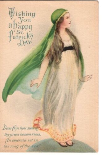 ANTIQUE ST. PATRICKS DAY Postcard 34AN EMERALD SET IN THE RING OF THE SEA34