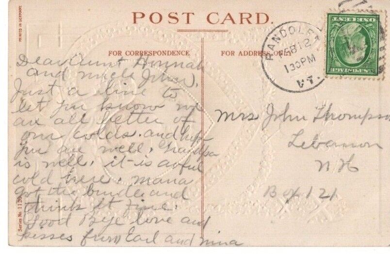 Title (ebay affiliate link): ANTIQUE EMBOSSED VALENTINE Postcard YOUNG LADY HEART DANGLING FROM GARLAND