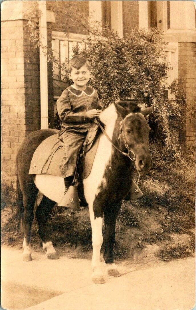 C627913 BOY ON A HORSE ANTIQUE REAL PHOTO POSTCARD