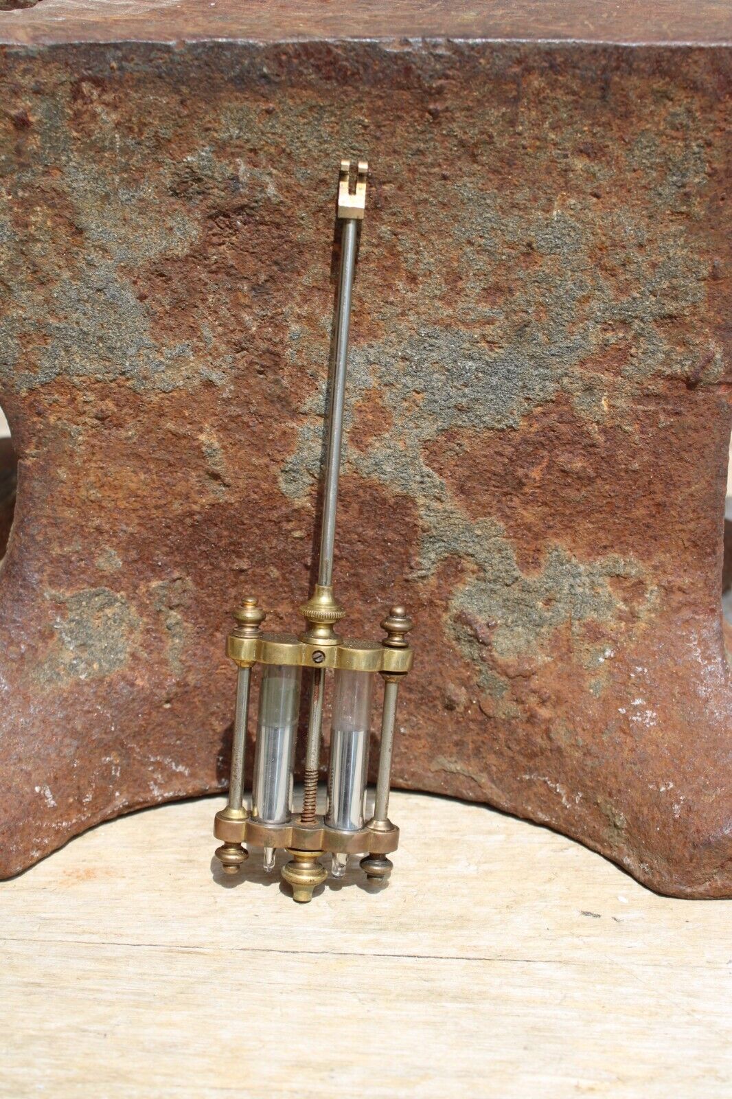 vermont clock co. 2 vial crystal regulator brass/glass parlor clock pendulum