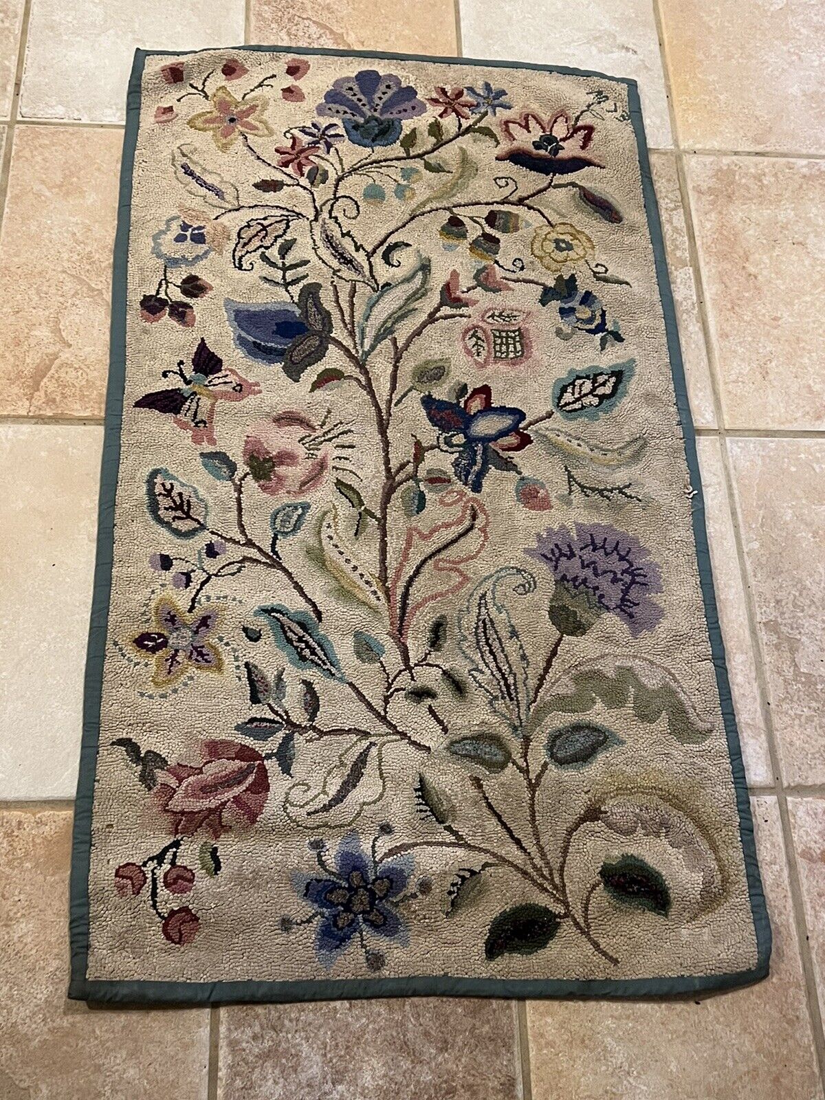 Old Grenfell Hooked Rug with labelHunter Dog