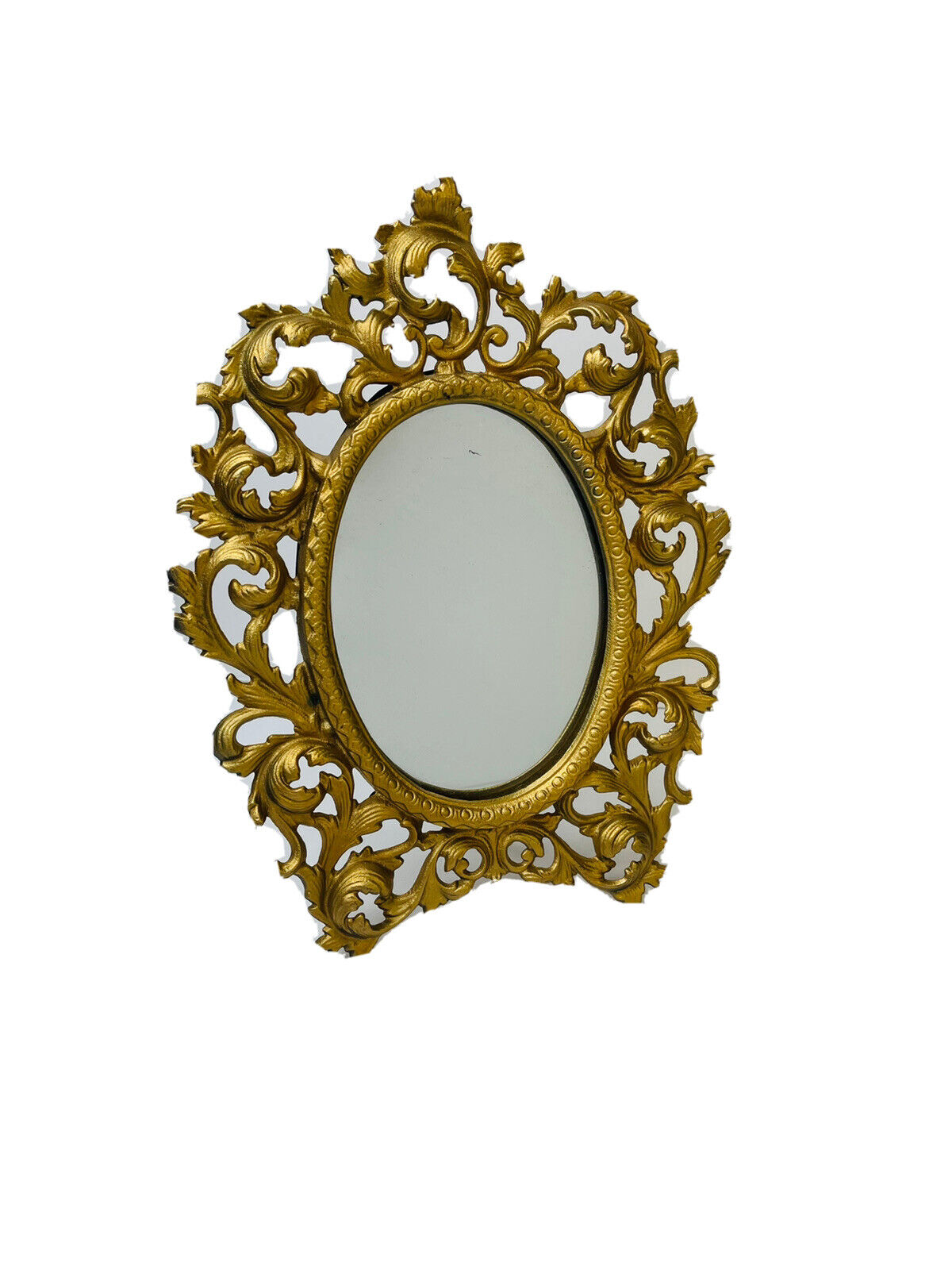 Vintage Victorian Small Brass Floral Ornate Hand Held Vanity Mirror