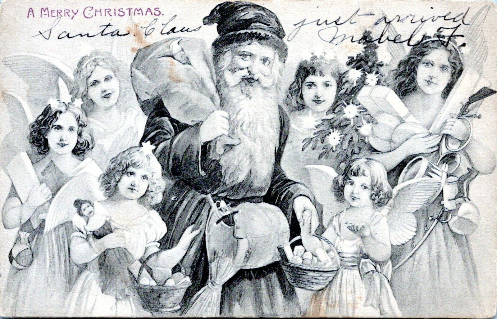 C627879 CHRISTMAS GREETINGS ANTIQUE POSTCARD.