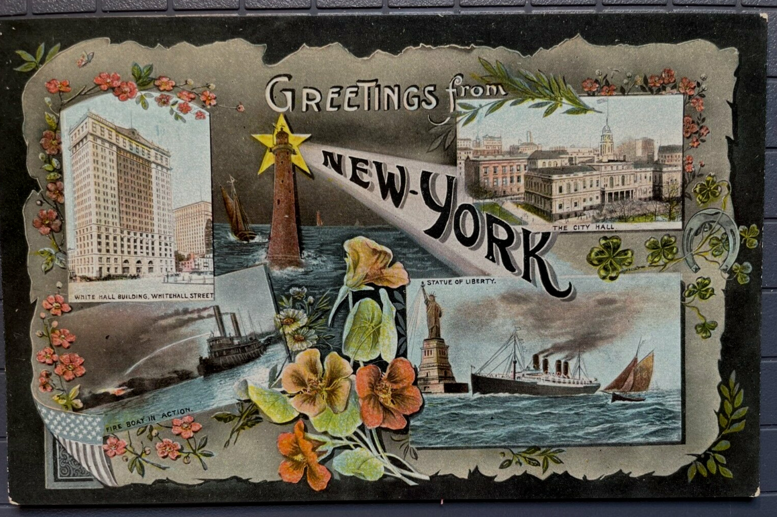 C627781 NEW YEAR GREETINGS ANTIQUE 190010S POSTCARD.