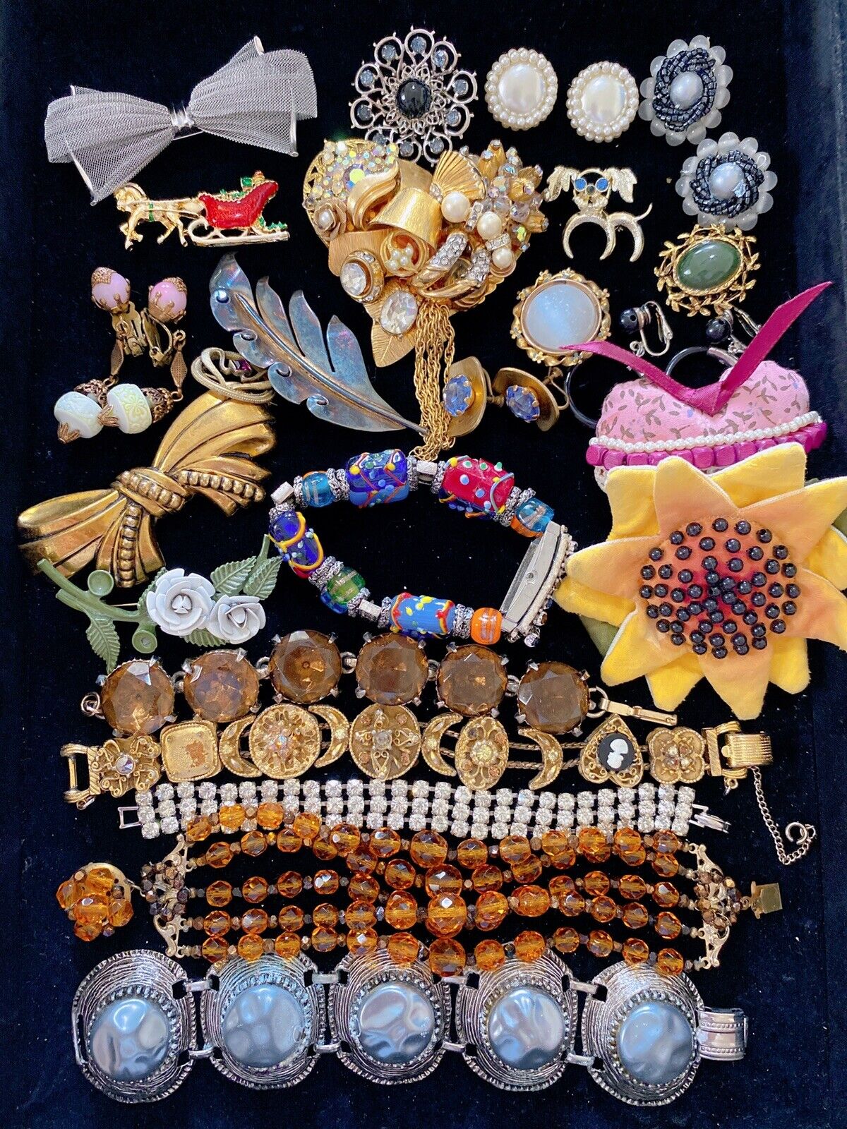 vintage jewelry Lot Rhinestone Some Signed Brooch And Earrings And Bracelet