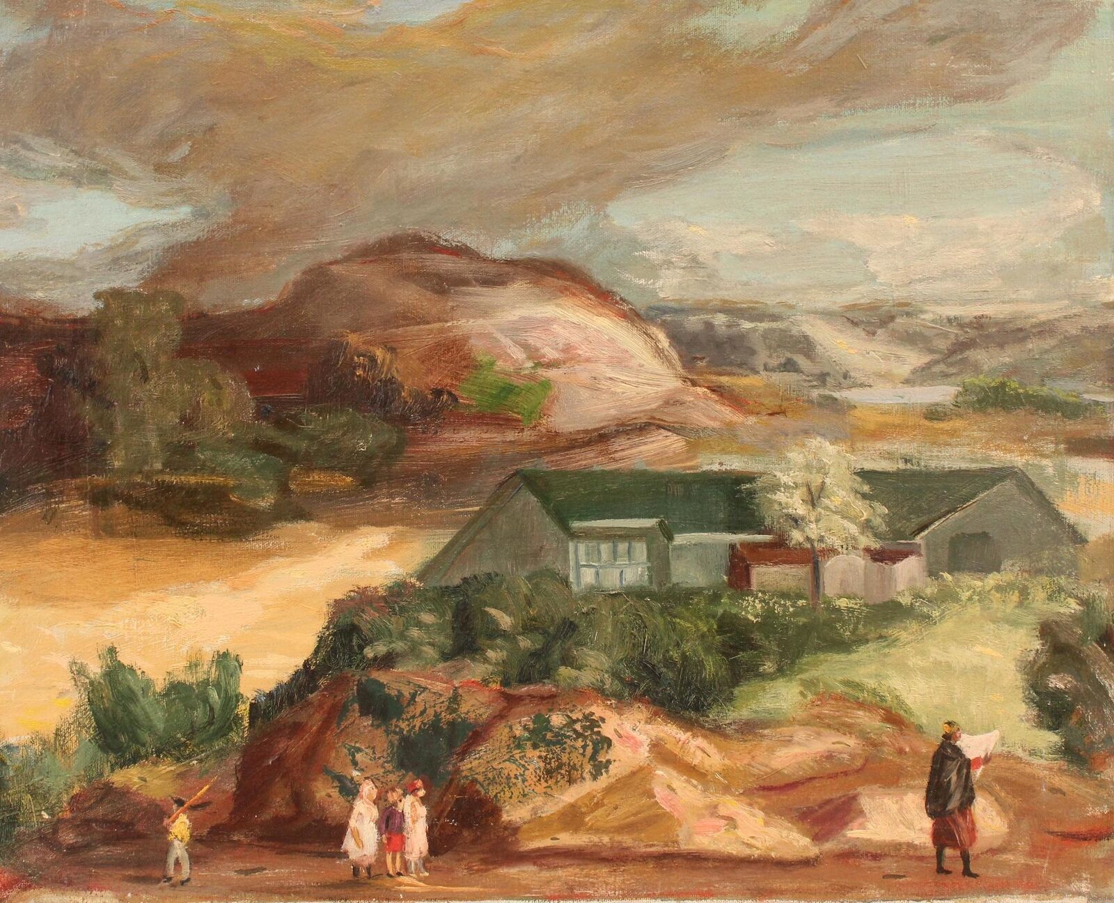 Original Antique GLEN RANNEY WPA Landscape Figures Oil Painting NO RESERVE