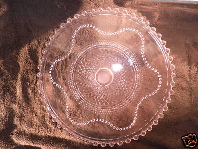 Title (ebay affiliate link): UNIQUE PINK DEPRESSION GLASS CAKE PLATE PEARL/BEADED