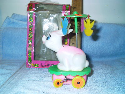 antique estate Easter Bunny Merry go round wind up toy