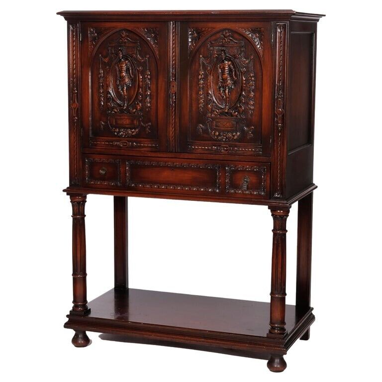 Masterpiece Antique carved Michelangelo Guggenheim walnut credenza