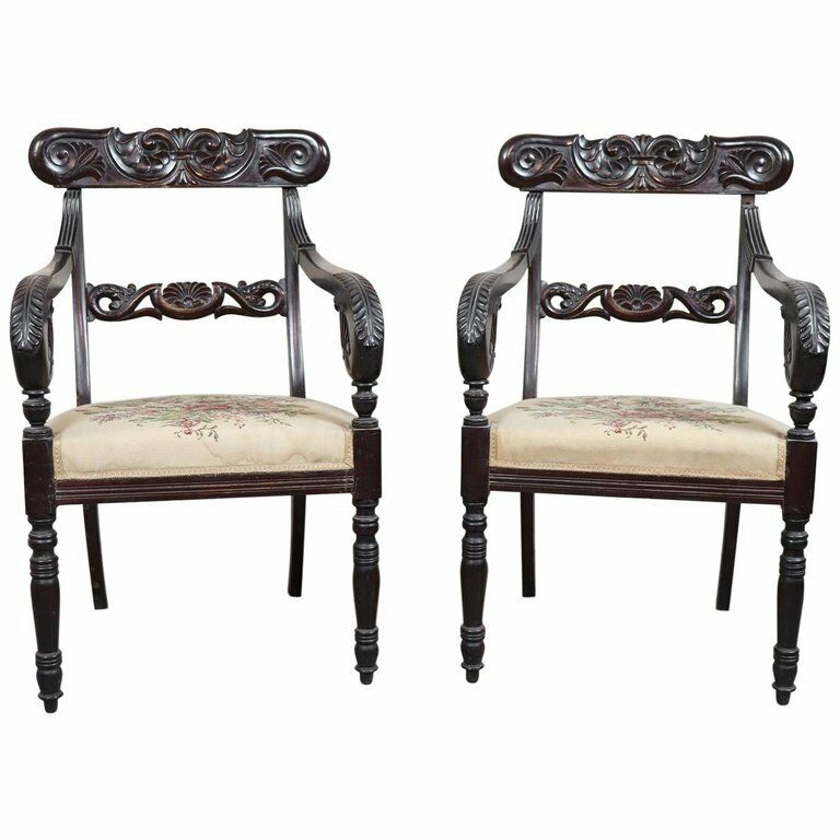 Title (ebay affiliate link): Exc Pair Of American Carved Mahogany Griffin Library Armchairs W/ Tufted Leather
