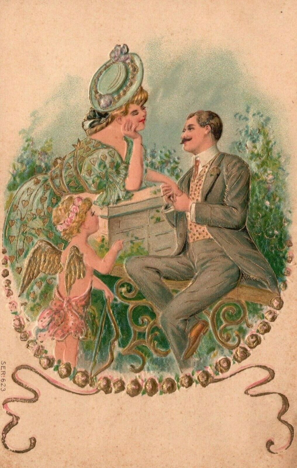 Title (ebay affiliate link): ANTIQUE EMBOSSED CHRISTMAS Postcard YOUNG GIRL WHISPERING IN BROTHERS EAR