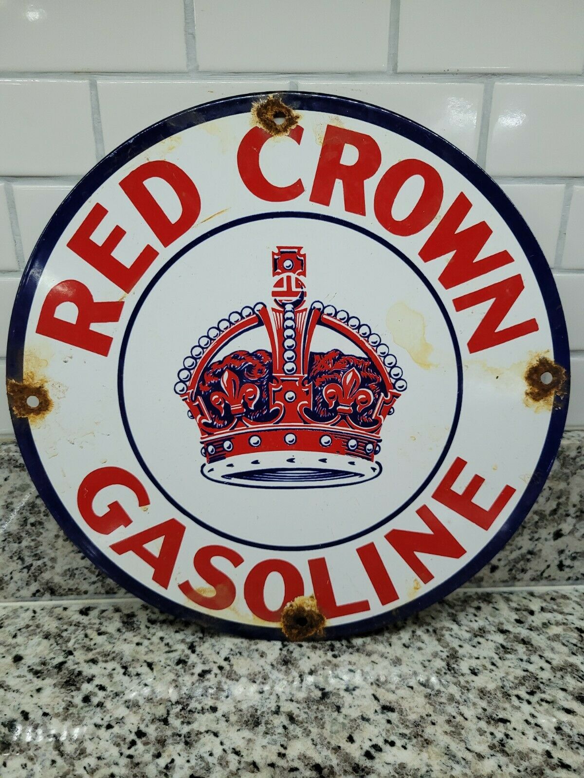 Title (ebay affiliate link): Porcelain Standard Red Crown gasoline metal vintage style gas pump plate sign