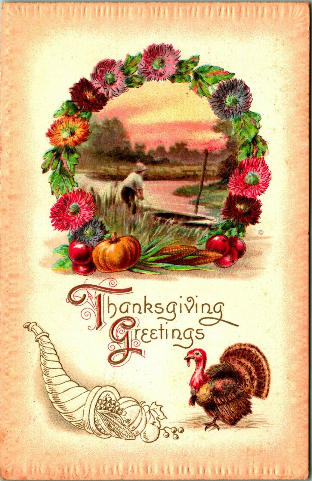 C628478 THANKSGIVING GREETINGS 190010s ANTIQUE POSTCARD.
