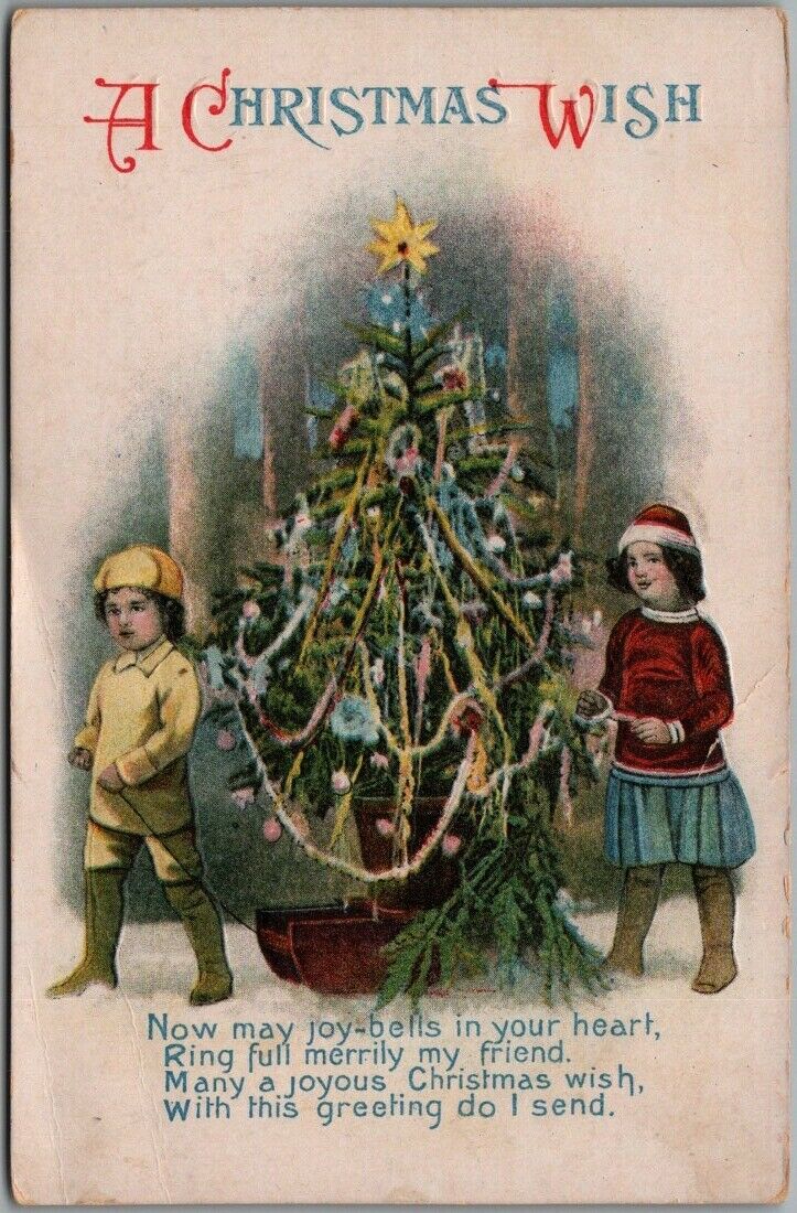 Title (ebay affiliate link): ANTIQUE EMBOSSED CHRISTMAS Postcard YOUNG GIRL HOLDING DOLLS XMAS TREE