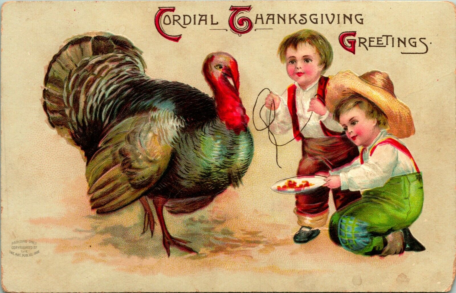 ANTIQUE THANKSGIVING Postcard ELLEN CLAPSADDLE TURKEY IN WOOD CRATE