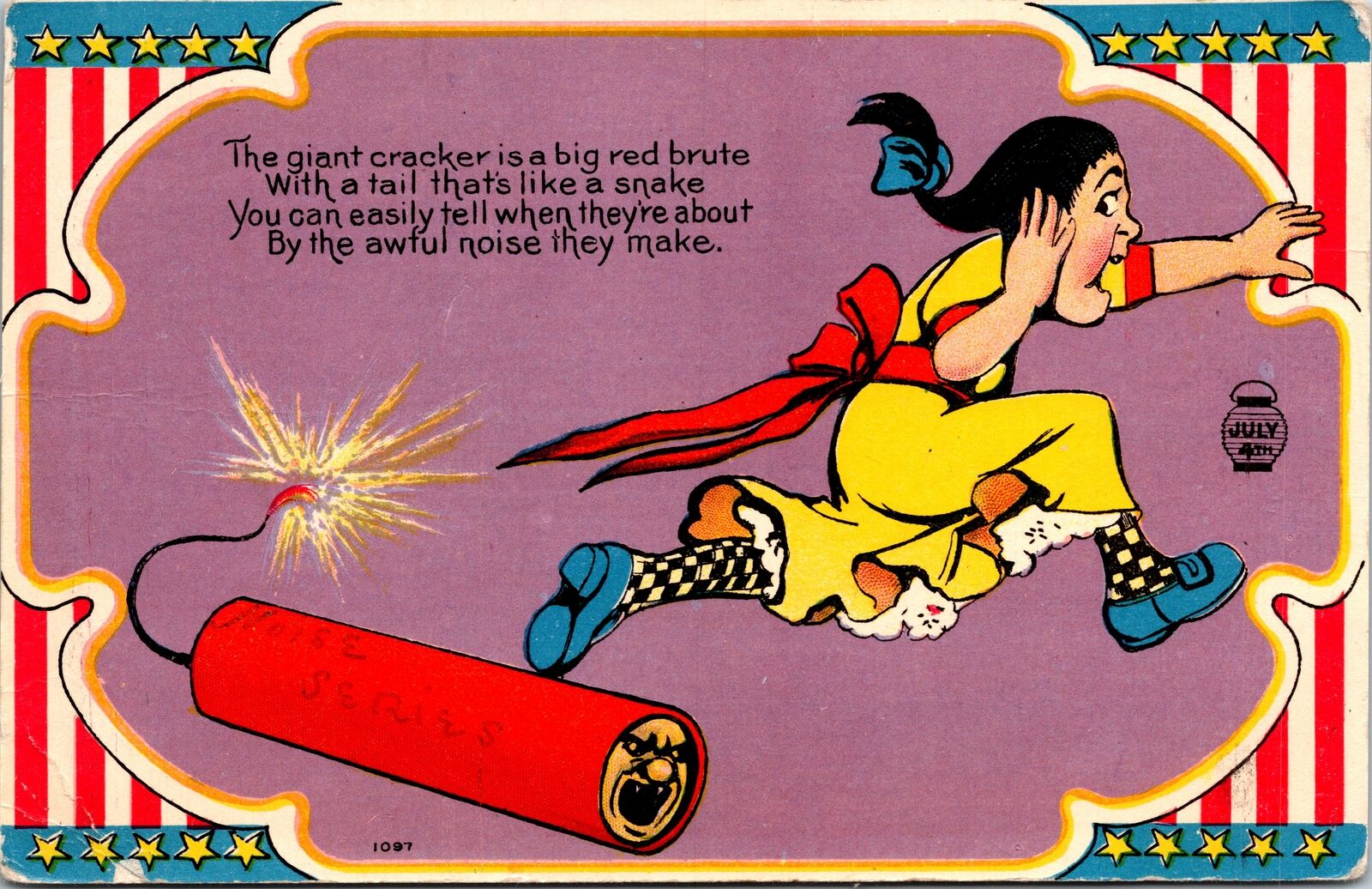 Title (ebay affiliate link): ANTIQUE JULY 4TH Postcard BOYS FEEDING DOG FIRECRACKER NOT A CANDY CANE