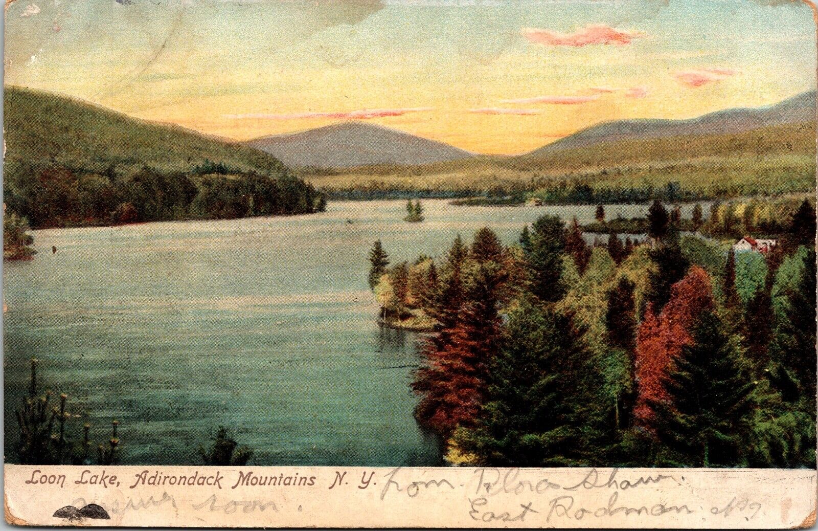 C8214 Rainbow Lake in the Adirondack Mountains Night View Antique Postcard