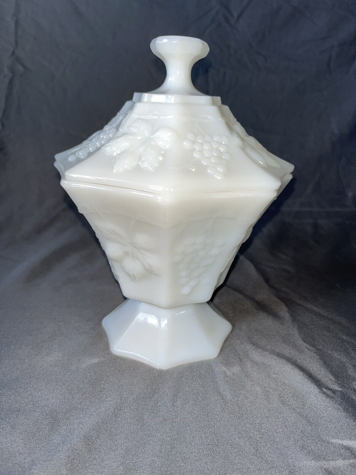 Title (ebay affiliate link): VINTAGE Milk Glass Harvest Grape Compote Covered Pedestal Dish