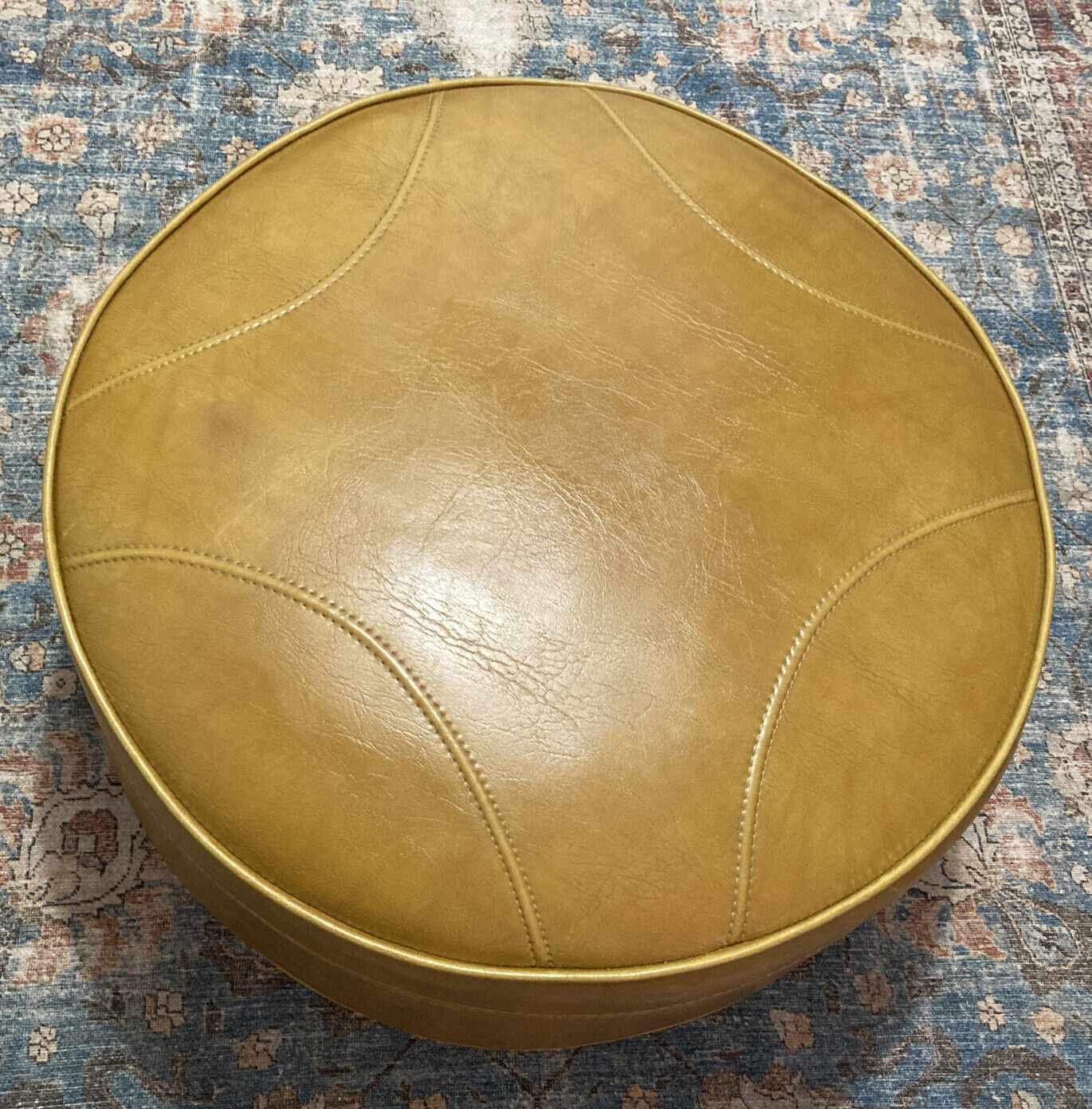 Title (ebay affiliate link): Vintage Mid Century Modern Retro Orange Ottoman Tapered Leg Round Footstool